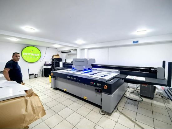 硬質材料印刷: 力宇UV平板打印機讓Rotinsa的業務邊界從柔軟的卷材擴展到堅硬的平板介質。無論是木材、玻璃、亞克力、金屬還是陶瓷,力宇設備都能提供附著力強、色彩鮮艷的打印效果,滿足了客戶對個性化裝飾、商業展示品的頂級需求。
