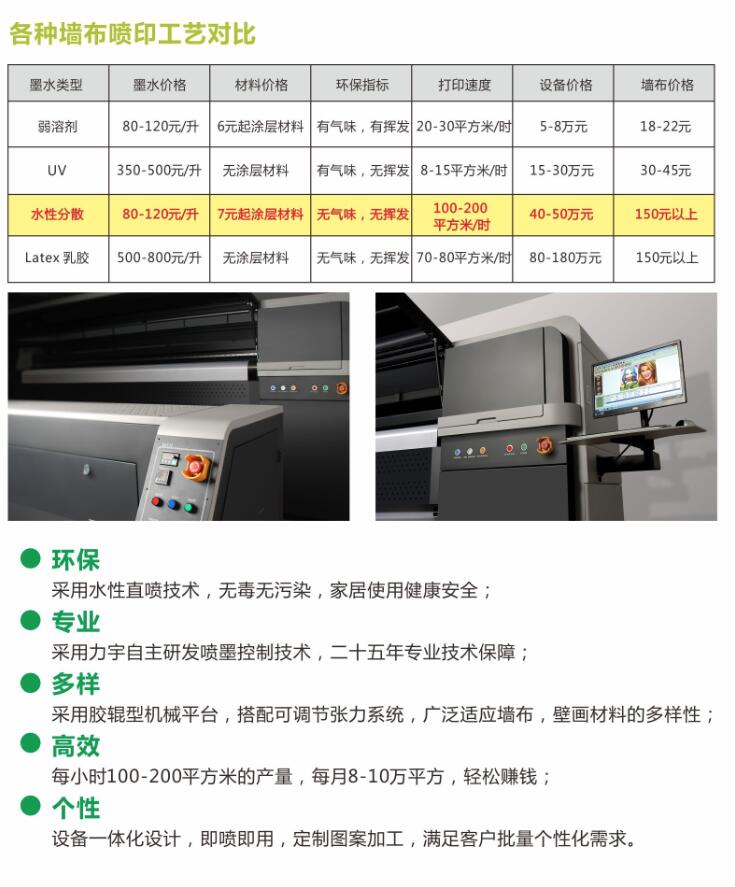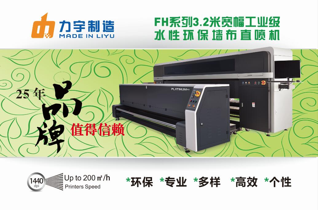 出展機型:FH系列3.2米寬幅工業(yè)級水性環(huán)保墻布直噴機;